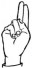 На ћирилици написано ФИЛОТИЈЕ НАУПАРАЦ састоји се из 16 слова [?]. Исписано ћириличном једноручном азбуком за глувонеме: